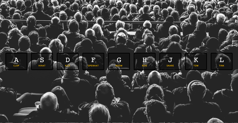 아래 첨부한 사진처럼 해당하는 키보드를 누르면 화면에 효과와 함께 소리가 나는 드럼 킷을 만드는 것